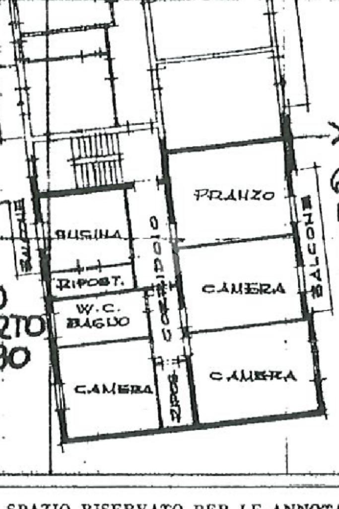 L'ingresso dell'immobile da direttamente sul corridoio dove affacciano tutti gli ambienti dell'appartamento e troviamo la cucina abitabile, dotato di postafinestra che affaccia sul primo balcone, proseguiamo sula sala da pranzo grande anch'esso dotato di portafinestra che porta sul secondo balcone, il primo ripostiglio, il bagno finestrato le tre camere da letto ( due matrimoniali e una singola) dove una di queste affaccia anch'essa sul secondo balcone dell'appartamento,e il secondo ripostoglio.