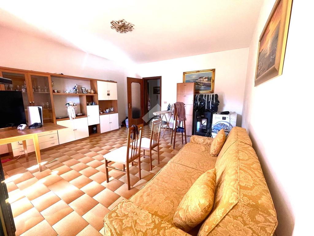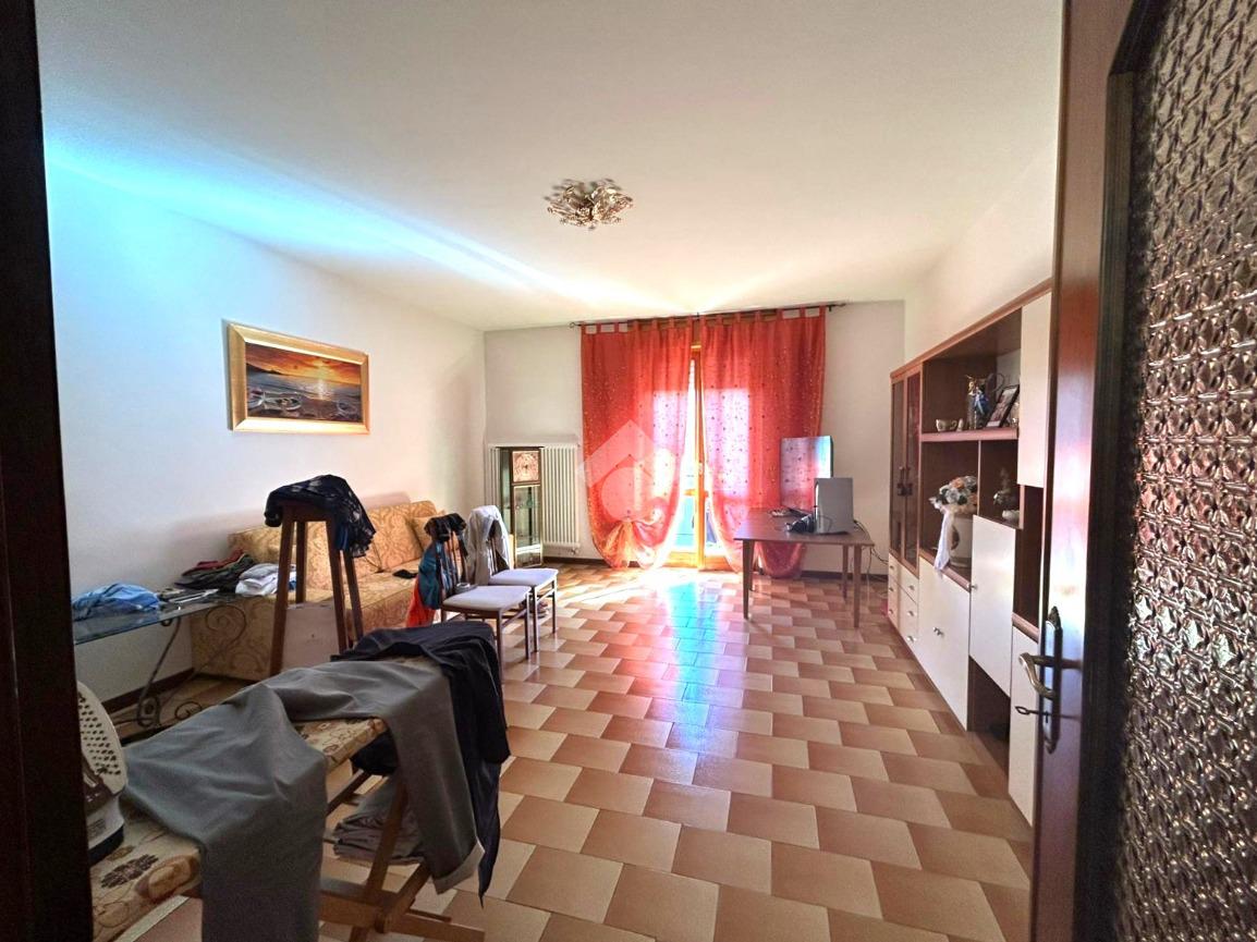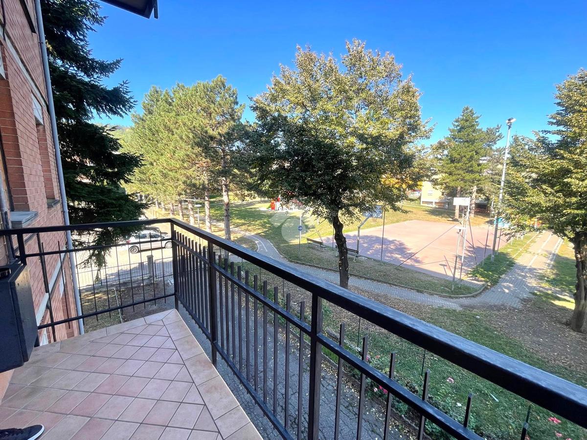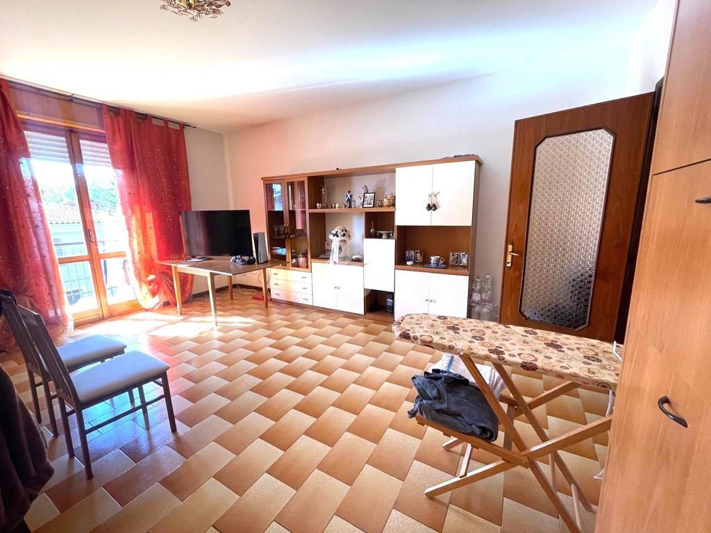 L'immobile affaccia direttamente sul corridoio dove troviamo la sala da pranzo con angolo cottura dotato di portafinestra che conduce al primo balcone con affaccio verso i giardini pubblici, successivamente si entra nel soggiorno, dotato di portafinestra anch'esso, che conduce al secondo balcone che affaccia sul giardino condominiale.