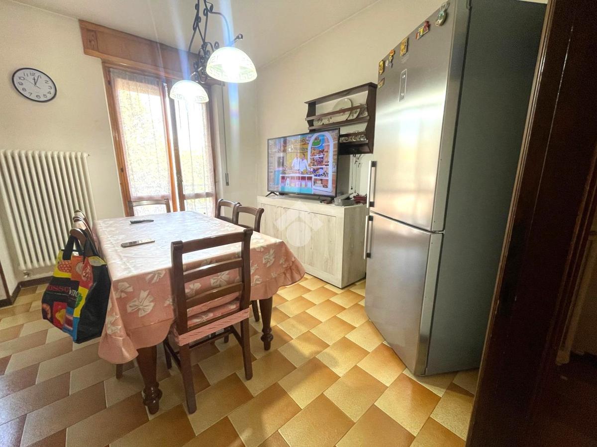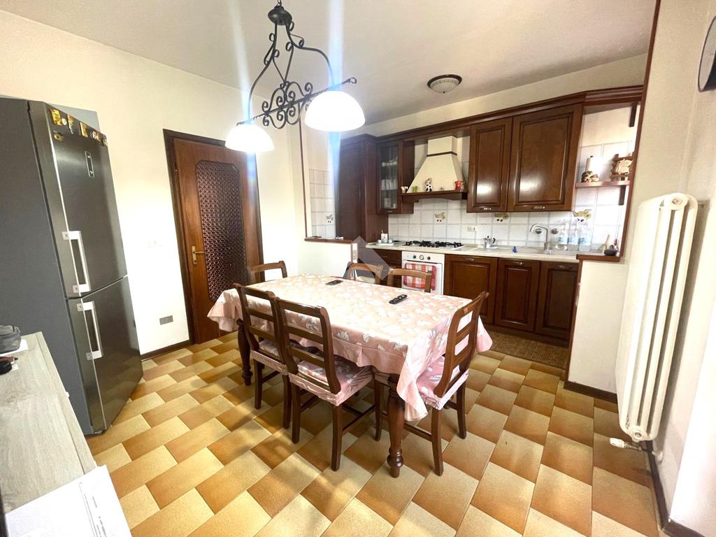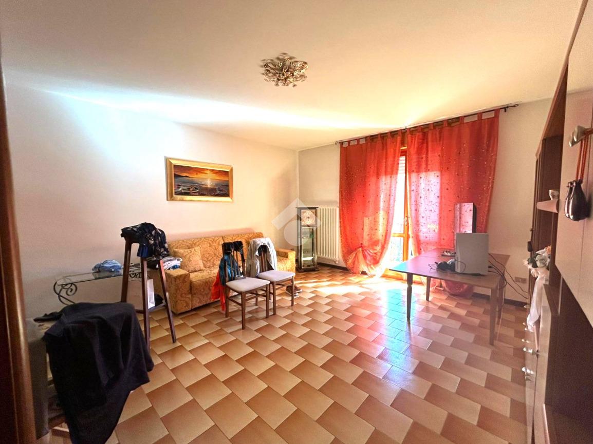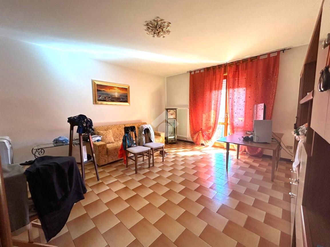 L'immobile affaccia direttamente sul corridoio dove troviamo la sala da pranzo con angolo cottura dotato di portafinestra che conduce al primo balcone con affaccio verso i giardini pubblici, successivamente si entra nel soggiorno, dotato di portafinestra anch'esso, che conduce al secondo balcone che affaccia sul giardino condominiale.