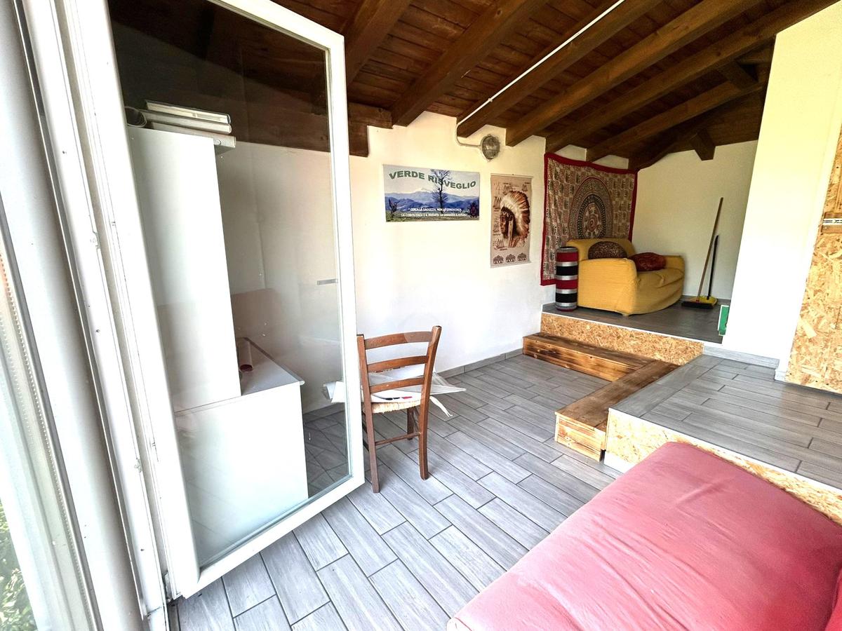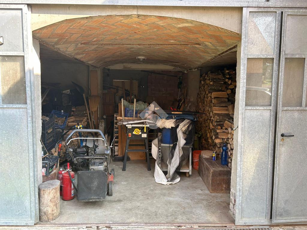 Esternamente, troviamo un vano magazzino, dove al piano terra troviamo l'autorimessa e la legnaia, al piano superiore, troviamo un ripostiglio completamente ristrutturato.