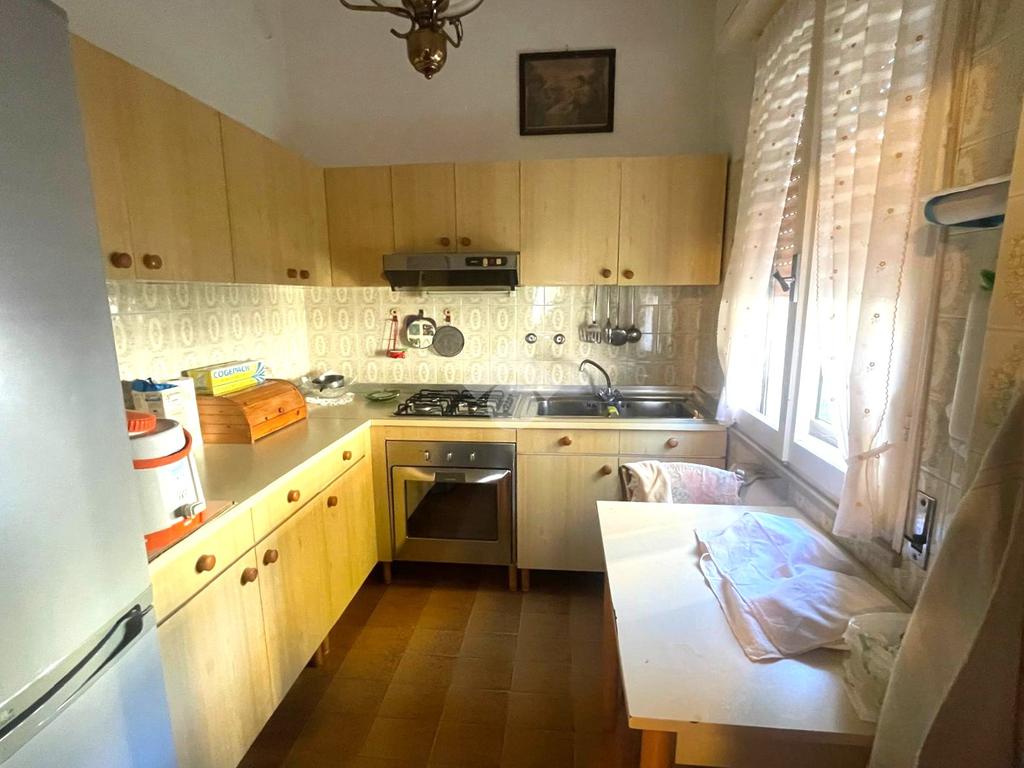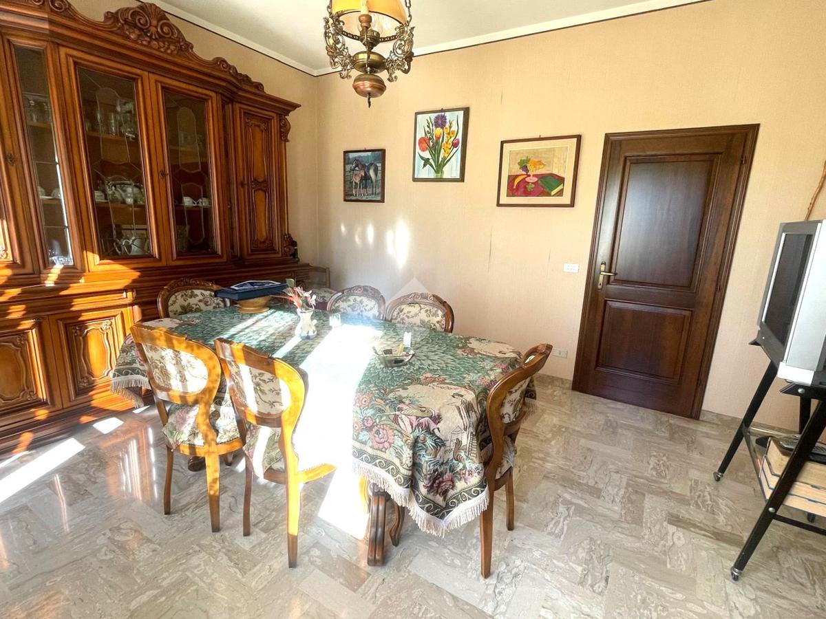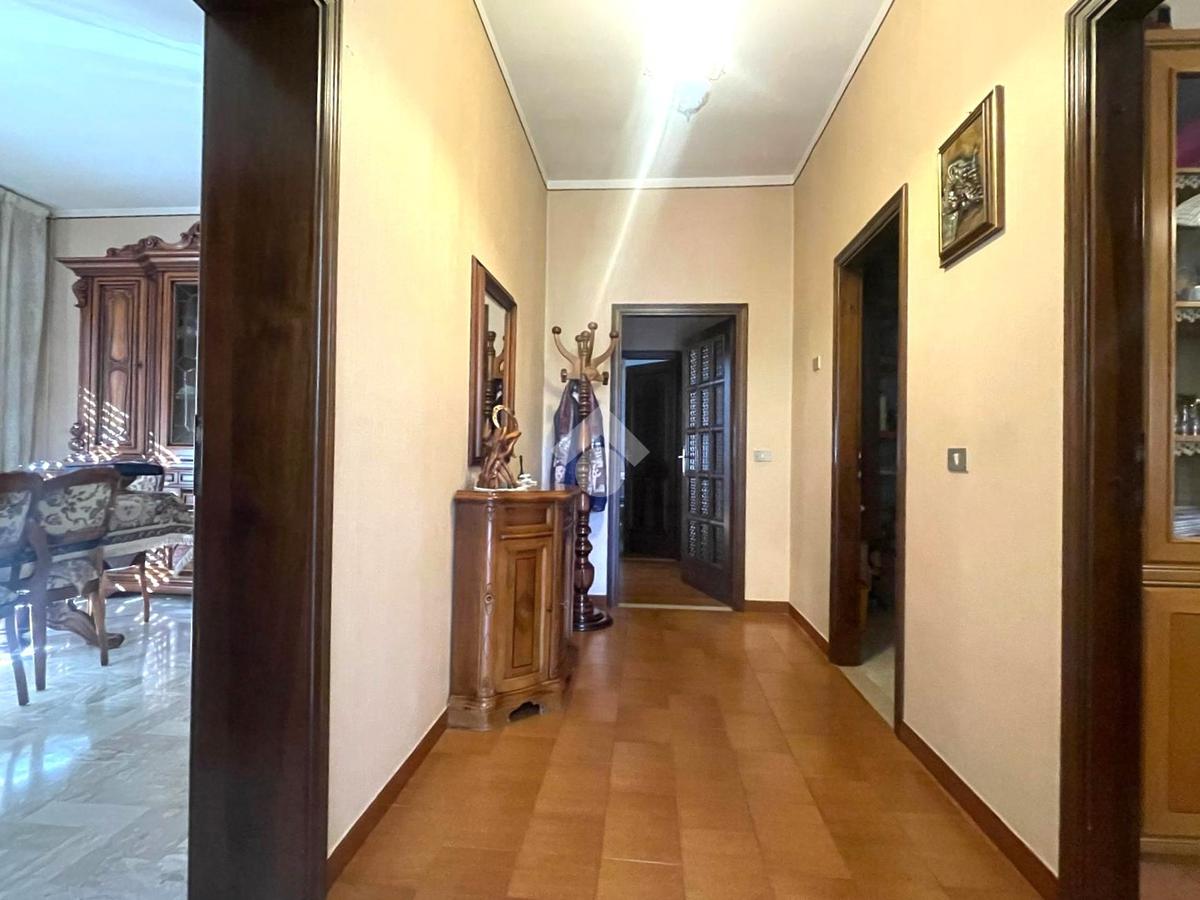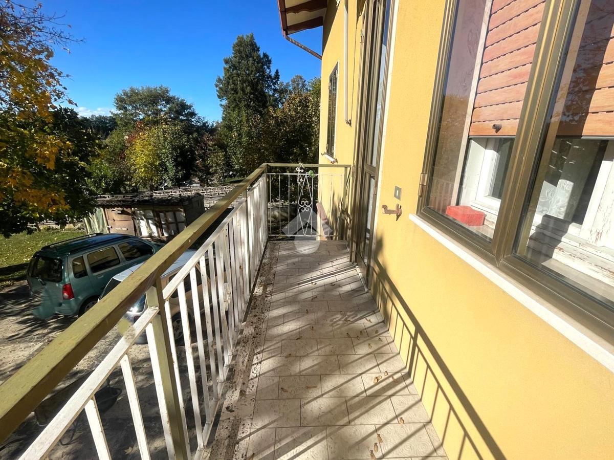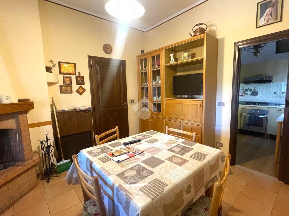 L'immobile è così composto:salendo al primo piano dalla scala esterna coperta , troviamo il terrazzo abitabile verandato, successivamente c'è l'ingresso dell'immobile che conduce al corridoio, il tinello con camino, il cucinotto finestrato, una sala molto grande dotato di portafinestra che conduce al balcone e il ripostiglio.